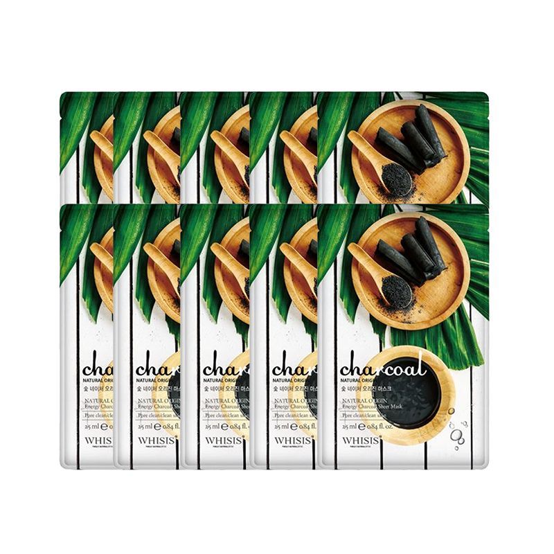 Mặt nạ Whisis Nature Origin Energy Charcoal Sheet Mask chứa than hoạt tính tăng cường làm sạch và thải độc cho da.