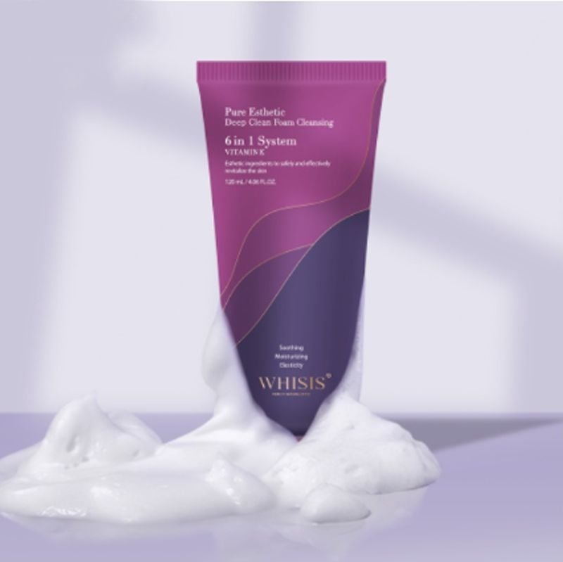 WHISIS Pure Esthetic Deep Clean Foam Cleansing bổ sung Vitamin E, ngoài khả năng làm sạch sâu còn hỗ trợ dưỡng sáng và chống oxy hóa. Chất kem mềm mịn, tạo bọt vừa đủ và không làm khô da sau khi sử dụng.