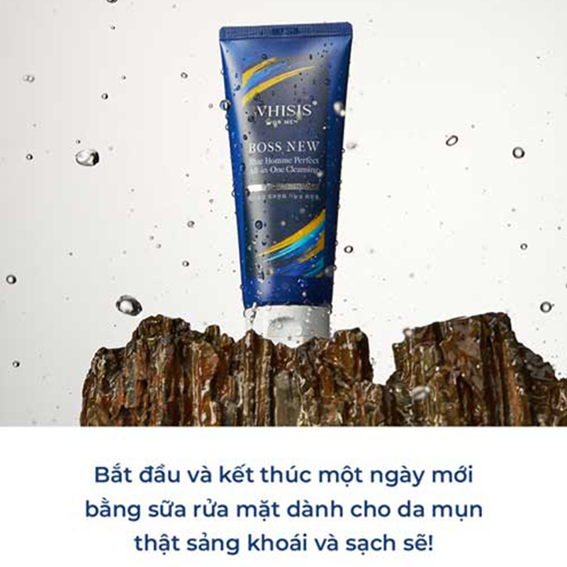 Sữa Rửa Mặt Nam Dành Cho Da Mụn Whisis For Men Boss New Blue Homme Perfect All-in-One Cleansing 150ml