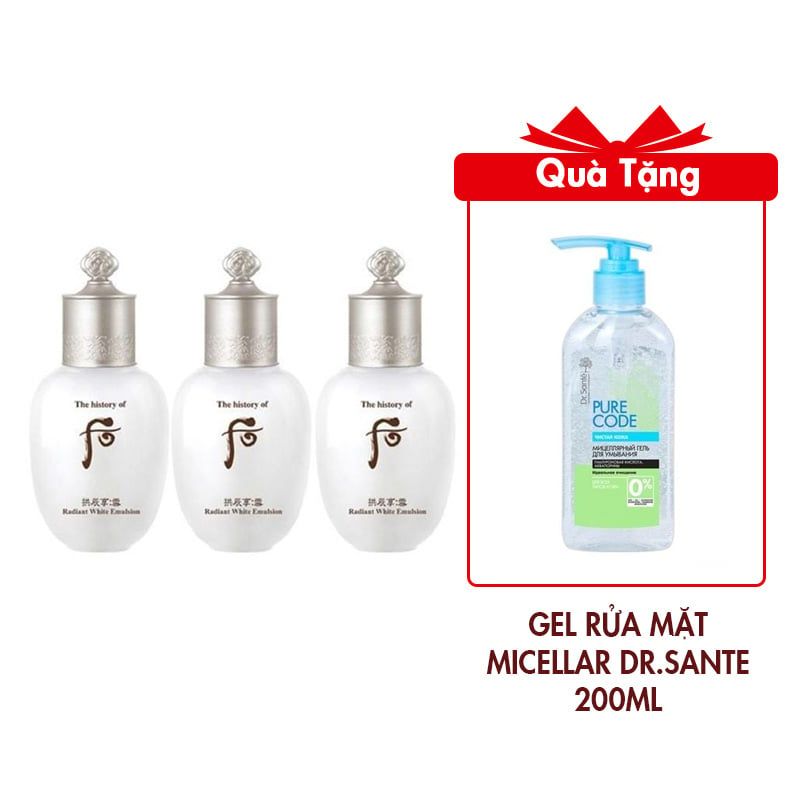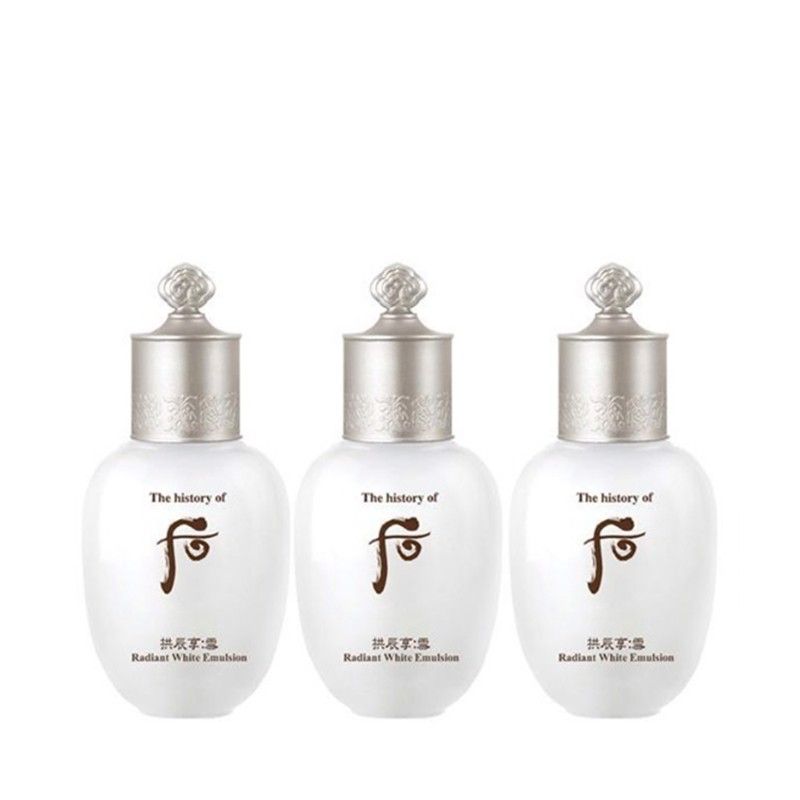 Sữa dưỡng trắng da Whoo Gongjinhyang Seol Radiant White Emulsion 20mlSữa dưỡng sáng da đông y với thành phần làm trắng chiết xuất từ Cam Cúc và phương pháp bí truyền Hoàng cung thất hương bạch tán nuôi dưỡng làn da không tì vết. Đem lại cảm giác mịn màng tươi mát. Sản phẩm lan nhẹ ôm lấy làn da tạo cảm giác mềm mại và nhẹ nhàng ngay khi thoa. Không gây dính rít hay khô ráp sau khi sử dụng mà trả lại tạo cảm giác mềm mại và ẩm mịn.