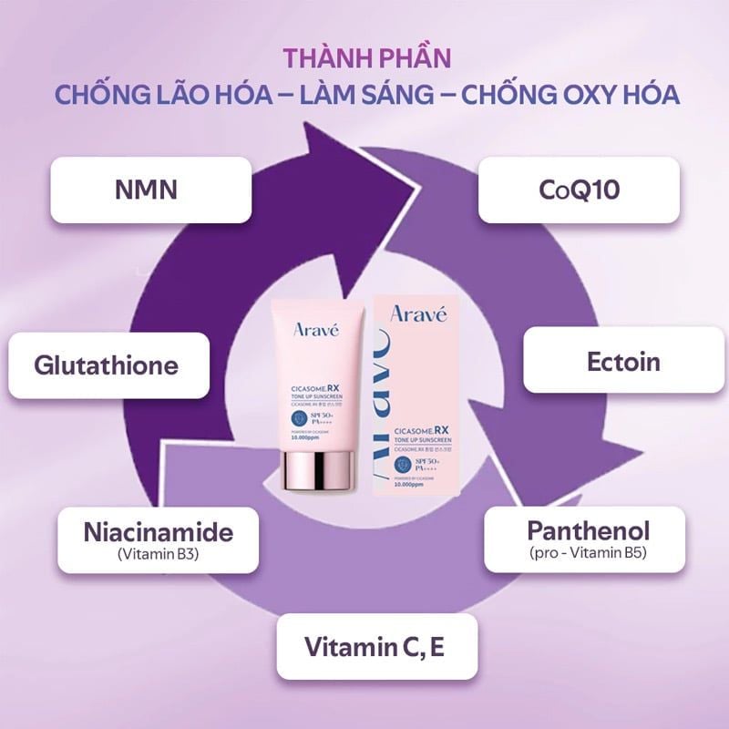 - Niacinamide 4%: giảm sự hình thành melanin, làm mờ nám sạm, tàn nhang, giúp da trắng sáng đều màu hơn.