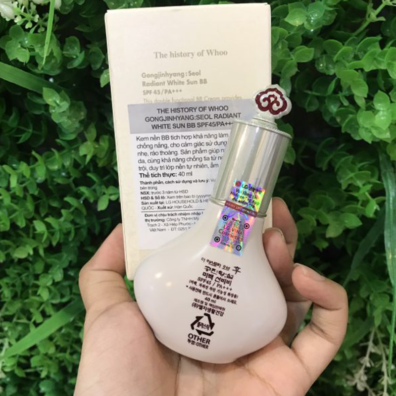 - Là một ấn phẩm đặc biệt đáp ứng được nhu cầu làm trắng, dưỡng da. Bảo vệ da khỏi tác hại của ánh nắng mặt trời. Với chỉ số chống nắng lên đến SPF 45/PA +++ là điều cơ bản và cần thiết để có một làn da khỏe mạnh. Kem nền chống nắng Whoo Gongjinhyang Seol Whitening Sun BB chứa bột ngọc trai làm trắng sáng, cho da độ bóng mượt, săn chắc, lộng lẫy.
