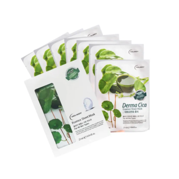 Mặt nạ Holikey Derma Cica Essence Mask Sheet có tác dụng làm dịu và thanh lọc làn da. Chiết xuất rau má có đặc tính ngừa các gốc tự do gây hại cho da, giảm viêm, làm dịu, Hydrat hóa lớp sừng và hàng rào biểu bì trên bề mặt da, đồng thời giúp giảm mất nước qua biểu bì giúp duy trì làn da ẩm mịn và mềm mại