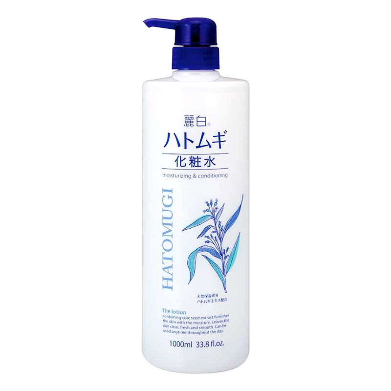 Nước Dưỡng Ẩm Và Làm Sáng Da Hatomugi 1000ml có thành phần chính là chiết xuất hạt Ý Dĩ giúp dưỡng trắng da, làm se khít lỗ chân lông, kháng viêm, kháng khuẩn, dưỡng ẩm, tăng cường khả năng đàn hồi của da, giảm nếp nhăn, chống lão hóa. Dầu thầu dầu giúp làm sạch da, loại bỏ bụi bẩn, bã nhờn, dầu thừa, tế bào chết trên da, đẩy nhanh quá trình làm lành vết thương trên da, ngăn ngừa lão hóa da. Glycerin và Hyaluronic Acid giúp dưỡng ẩm chuyên sâu, củng cố lớp hàng rào bảo vệ da. Citric Acid giúp làm mịn da, tăng cường khả năng làm sạch, dưỡng trắng da, làm mờ nếp nhăn, kích thích sản sinh Collagen và tế bào mới trên da, đẩy lùi các dấu hiệu lão hóa da.