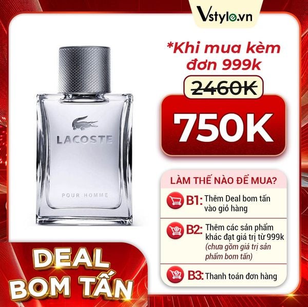 Nước hoa nam Lacoste Pour Homme EDT của thương hiệu Lacoste được ra mắt vào năm 2002. Chuyên gia tài ba và sáng tạo Claude Dir là “người thổi hồn” cho mùi hương nam tính này. Hơn thế Lacoste Pour Homme còn được chú ý bởi cách quảng bá độc đáo. Đó là hình ảnh người đàn ông hỏa thân cầm tách trà thể hiện một ánh nhìn nam tính, sâu lắng và tự tin.