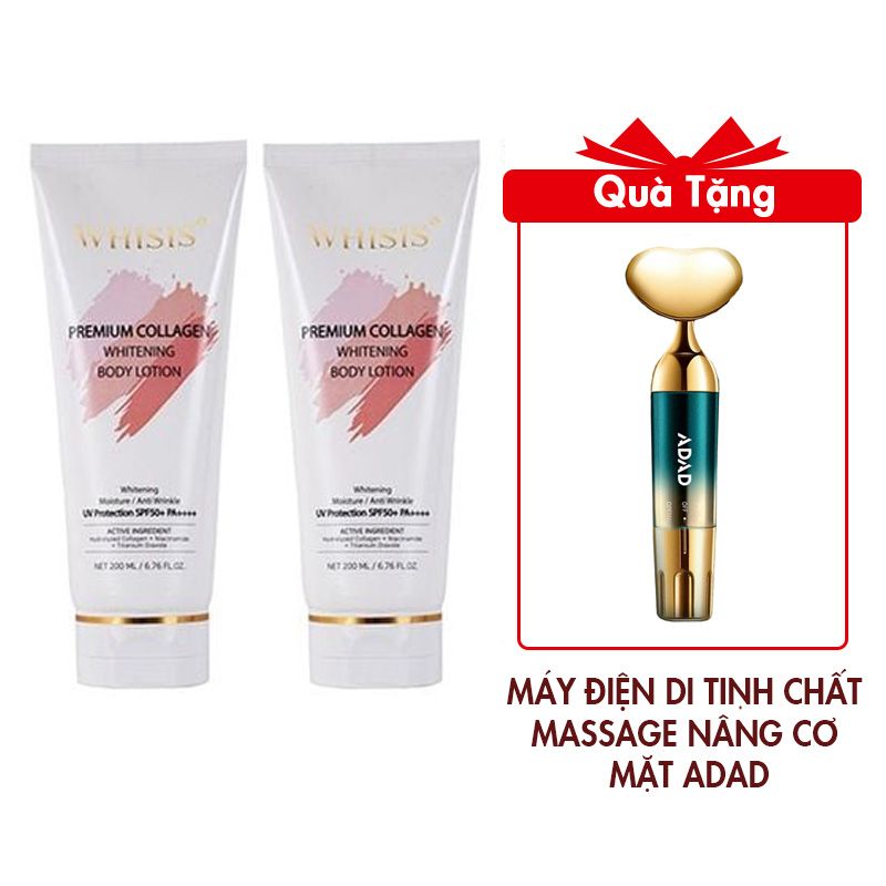 (HSD: 4/2026) Combo 2 Kem Dưỡng Thể Trắng Da Chống Nắng WHISIS Premium Collagen Whitening Body Lotion 200mlx2 Tặng Máy Điện Di Tinh Chất Massage Nâng Cơ Mặt Cầm Tay ADAD
