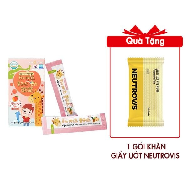 Thạch High Kids Plus chứa Canxi và Vitamin D, dạng thạch dẻo và hương vị đào thơm ngon.