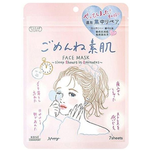 Dòng mặt nạ dưỡng da Kose Clear Turn với slogan "Better Than Sleeping" giúp cung cấp dưỡng chất, lấy lại vẻ đẹp cho làn da chỉ sau 8 phút. Sản phẩm đặc biệt dành cho những cô nàng bận rộn, không có thời gian chăm sóc da hoặc giấc ngủ không đủ 8 tiếng/ngày.