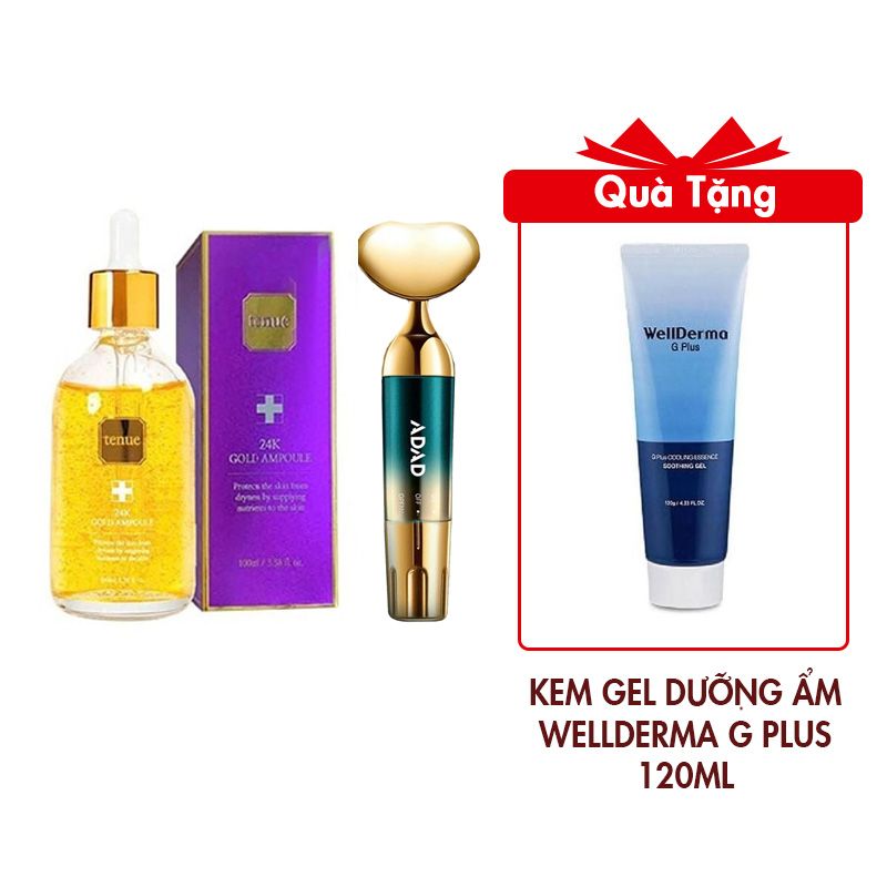 Serum Tinh Chất Vàng 24K Ampoule 100ml Tặng Máy Điện Di Tinh Chất Massage Nâng Cơ Mặt Cầm Tay ADAD + Gel Dưỡng Ẩm Wellderma G Plus Mils Acis Ance Gel Cleanser 120ml