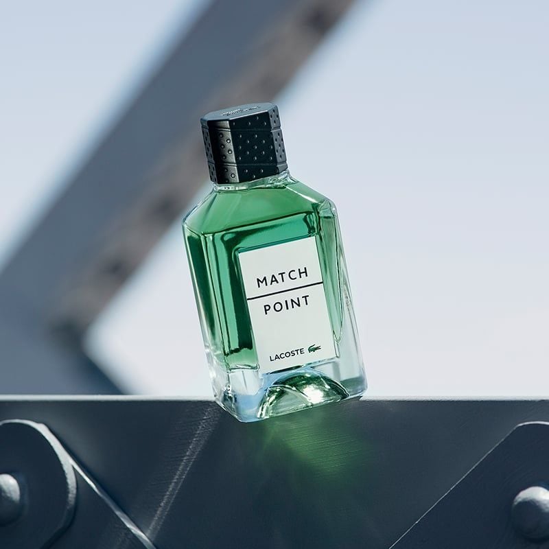 Lacoste Match Point EDT một sự kết hợp bùng nổ của hai sự tương phản. Năng lượng xanh của húng quế và vị đắng của cây khổ sâm kết hợp tạo nên một sự tươi mát ngoạn mục. Xanh tươi nhưng không hề mờ nhạt, Xô thơm như một nét màu hoang dại, điểm phát thêm chút thanh cay, ngọt dịu của Xô thơm và Hoa phong lữ. Màu đen sang trọng của cỏ vetiver thân gỗ mang đến sức mạnh và sự mãnh liệt.