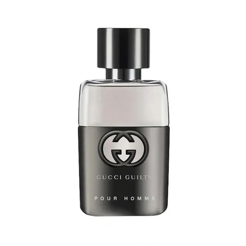 Hương thơm mở đầu đánh thức các giác quan bằng hỗn hợp cocktail tươi mát của hương chanh Ý, hương thảo mộc sinh động hòa quyện với hồ tiêu hồng nồng nàn khơi dậy tinh thần nhiệt huyết, tràn trề sức sống. Hương giữa đầy mạnh mẽ và khiêu khích như một lời mời gọi là sự phản chiếu của hương hoa oải hương tươi mát kết hợp với hương bạch đậu khấu cám dỗ kích thích, rồi đột ngột chuyển hướng sang hương hoa cam và tinh dầu hoa cam mềm mại tinh tế. Điểm nhấn đặc biệt của hương thơm Gucci Guilty pour Homme là bản hợp âm tài tình của hoắc hương, tuyết tùng, gỗ đàn hương và hổ phách khiến hương thơm thêm mạnh mẽ, quyền lực và vô cùng gợi cảm.