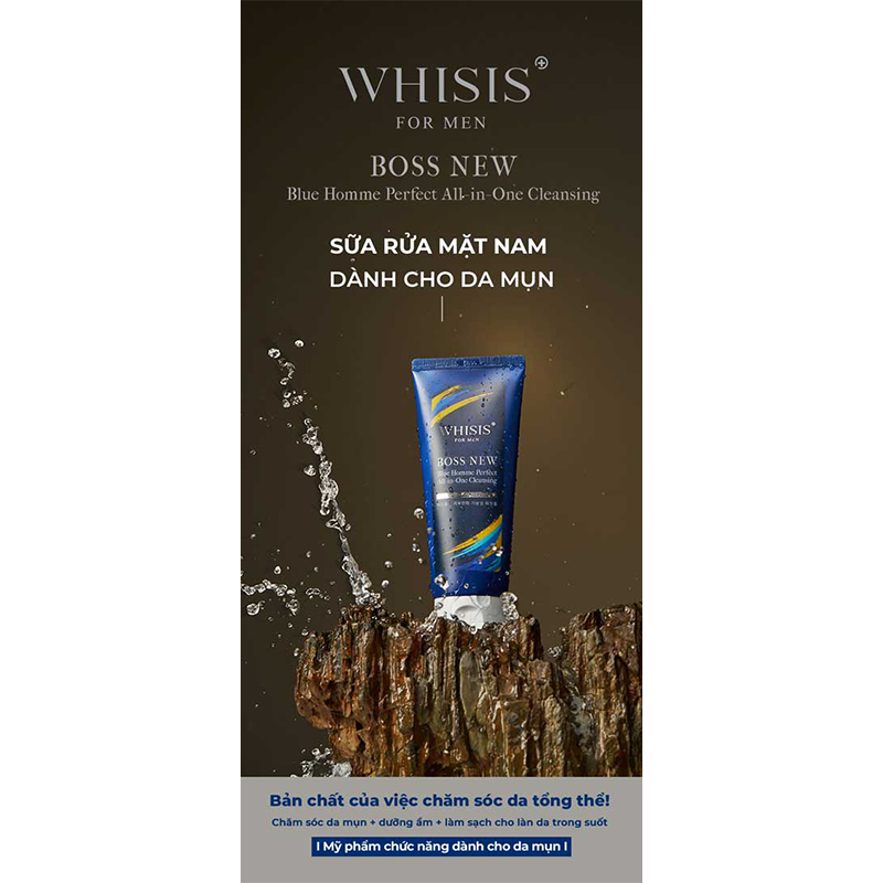 Sữa Rửa Mặt Nam Dành Cho Da Mụn Whisis For Men Boss New Blue Homme Perfect All-in-One Cleansing 150ml