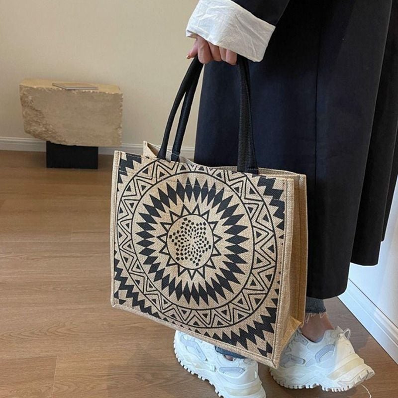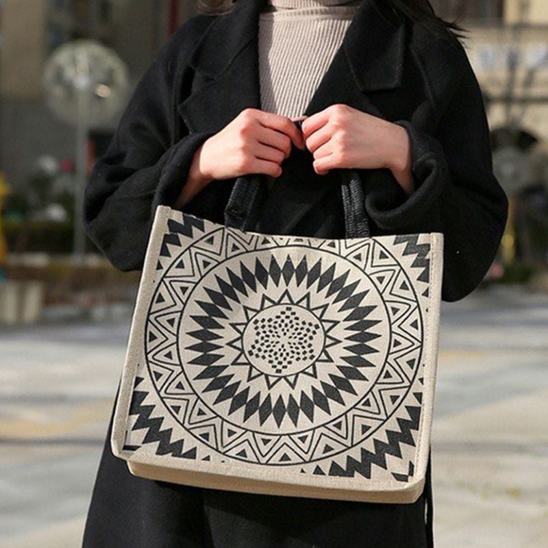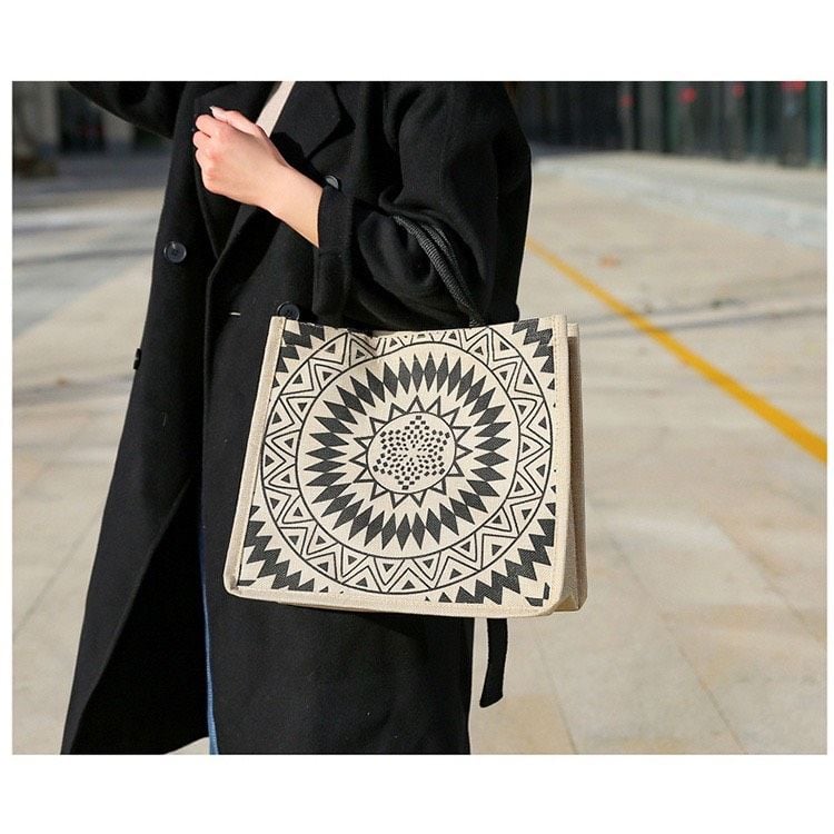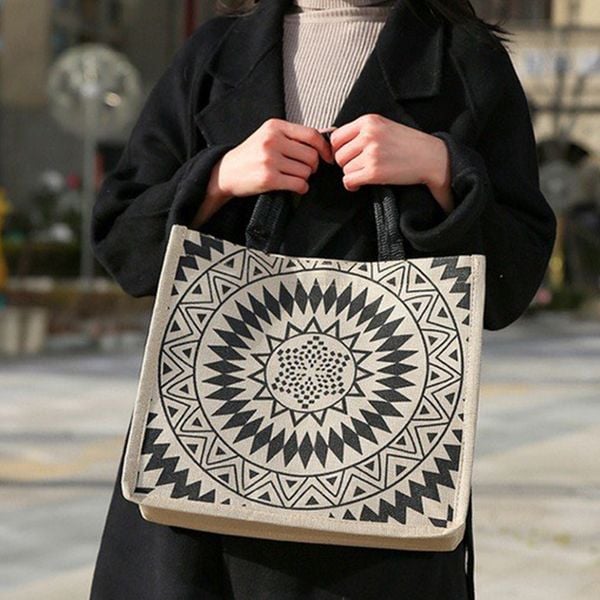 - Thiết kế: Đơn giản, in họa tiết sắc nét, có quai xách, lót chống thấm, khóa bấm